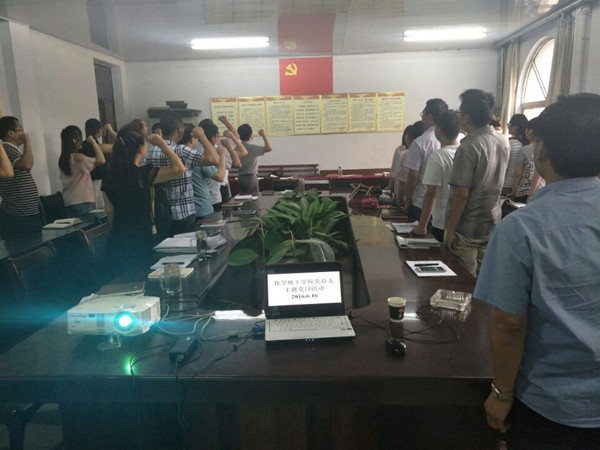 按照院党总支“两学一做”学习教育工作安排,6月16日,化学化工学院党总支组织了“重温入党誓词”主题党日活动。全体师生党员参加了此次活动。