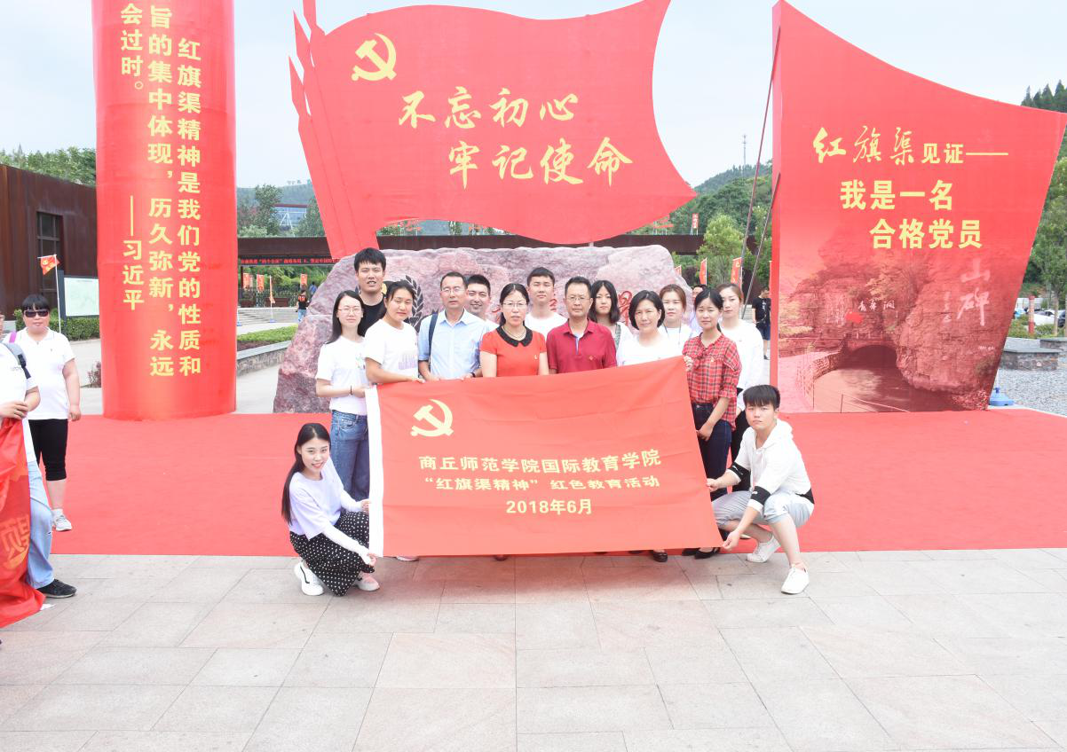 为纪念中国共产党成立97周年,进一步深入学习贯彻习近平新时代中国特色社会主义思想和党的十九大精神,6月30日,国际教育学院教工党支部、学生党支部党员代表及入党积极分子代表在党总支书记李秀琴、院长任付标带领下,赴河南林州开展“不忘初心,牢记使命”学习“红旗渠精神”主题党日活动。