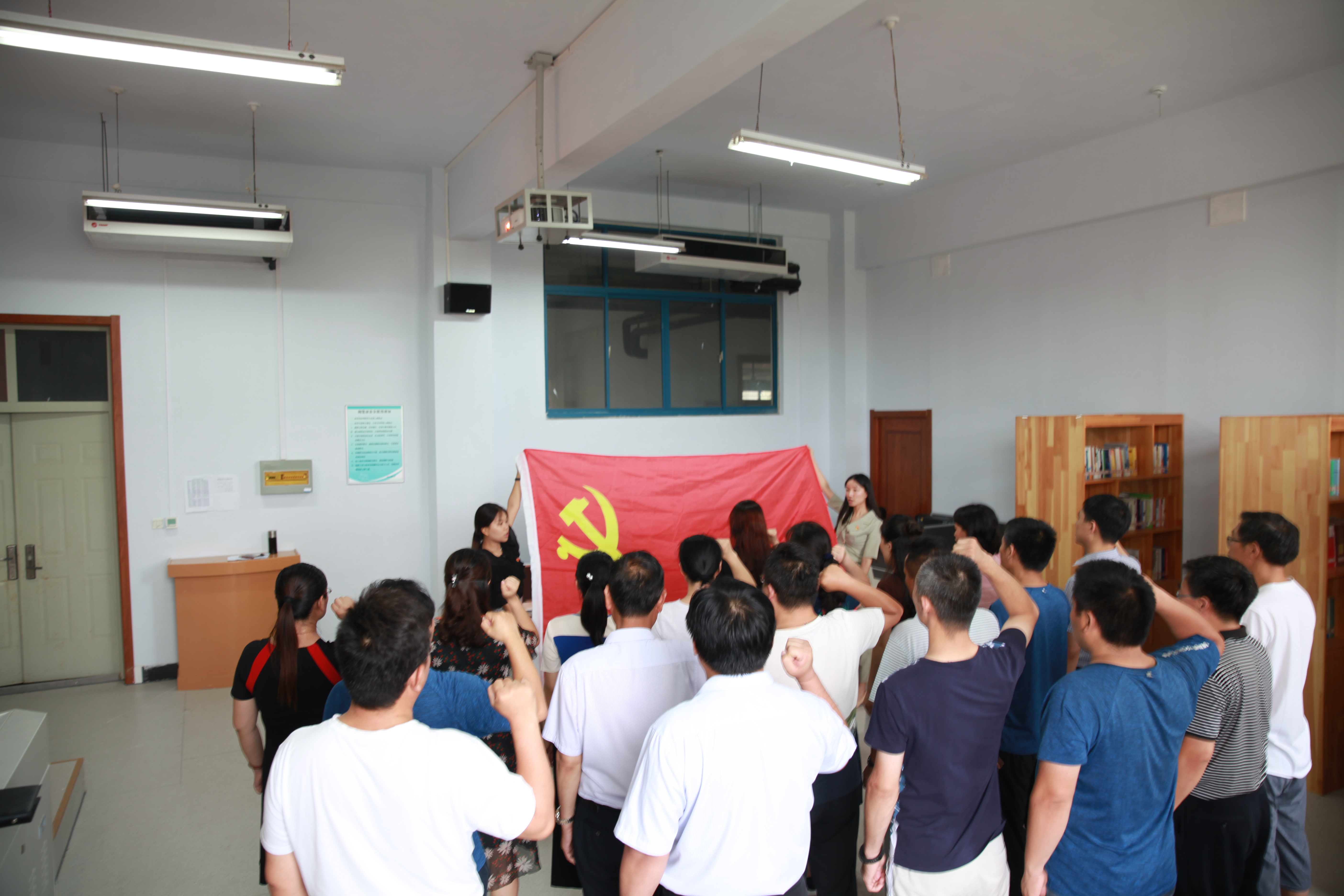 为引导师生党员加深对初心和使命的认识理解,教工党支部和学生党支部全体党员分别面对鲜艳的党旗,庄严地举起右手,再次发出铮铮誓言,重温入党誓词,进一步坚定了理想信念,增强了责任感和使命感,表达了对党的事业奋斗终身的决心和愿望。(图/吕燕梅 文/张红玉)