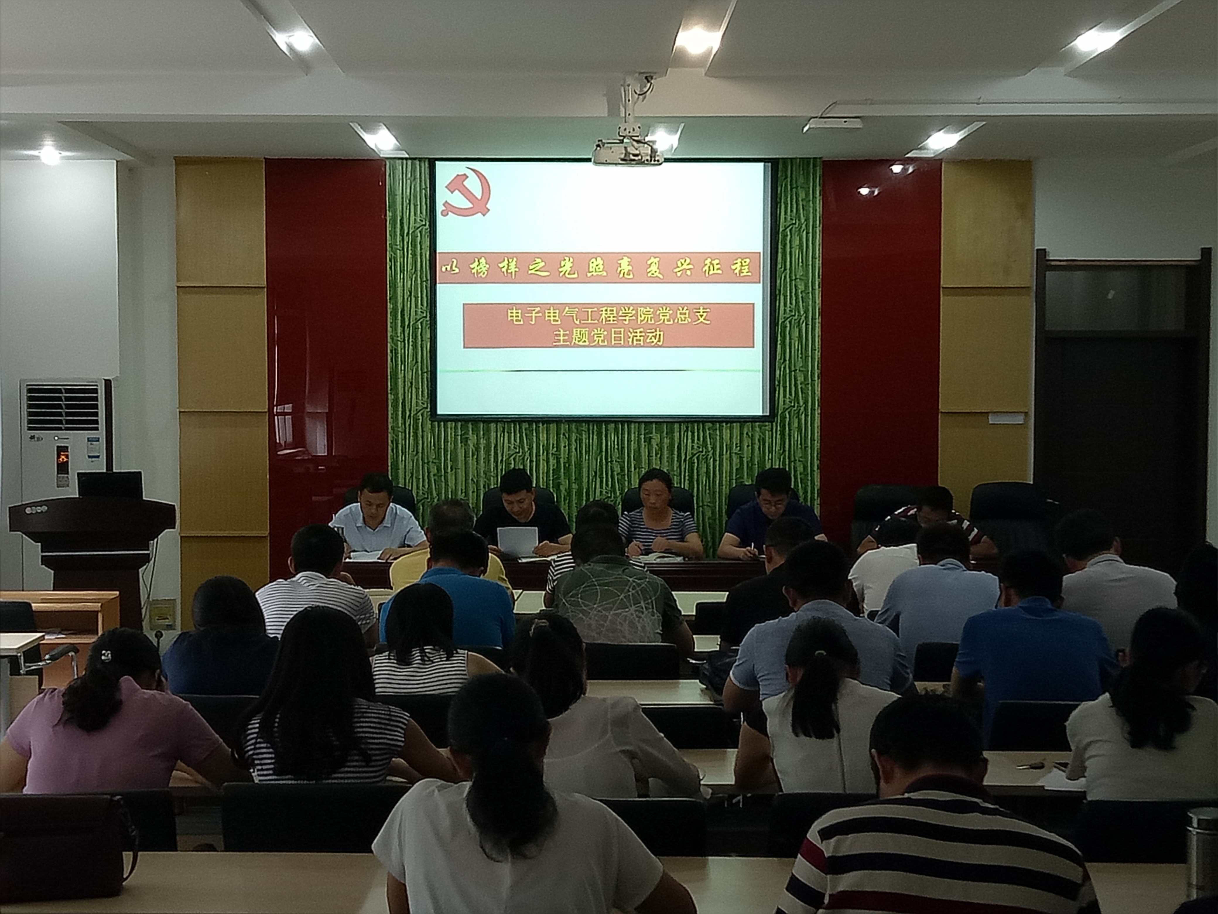 为深入学习贯彻习近平新时代中国特色社会主义思想和党的十九大精神,持续推进“两学一做”学习教育常态化制度化,纪念建党97周年,6月29日,电子电气工程学院党总支举行“不忘初心牢记使命”党日活动。全体教工党员参加了活动,活动由党总支书记姚晓惠主持。