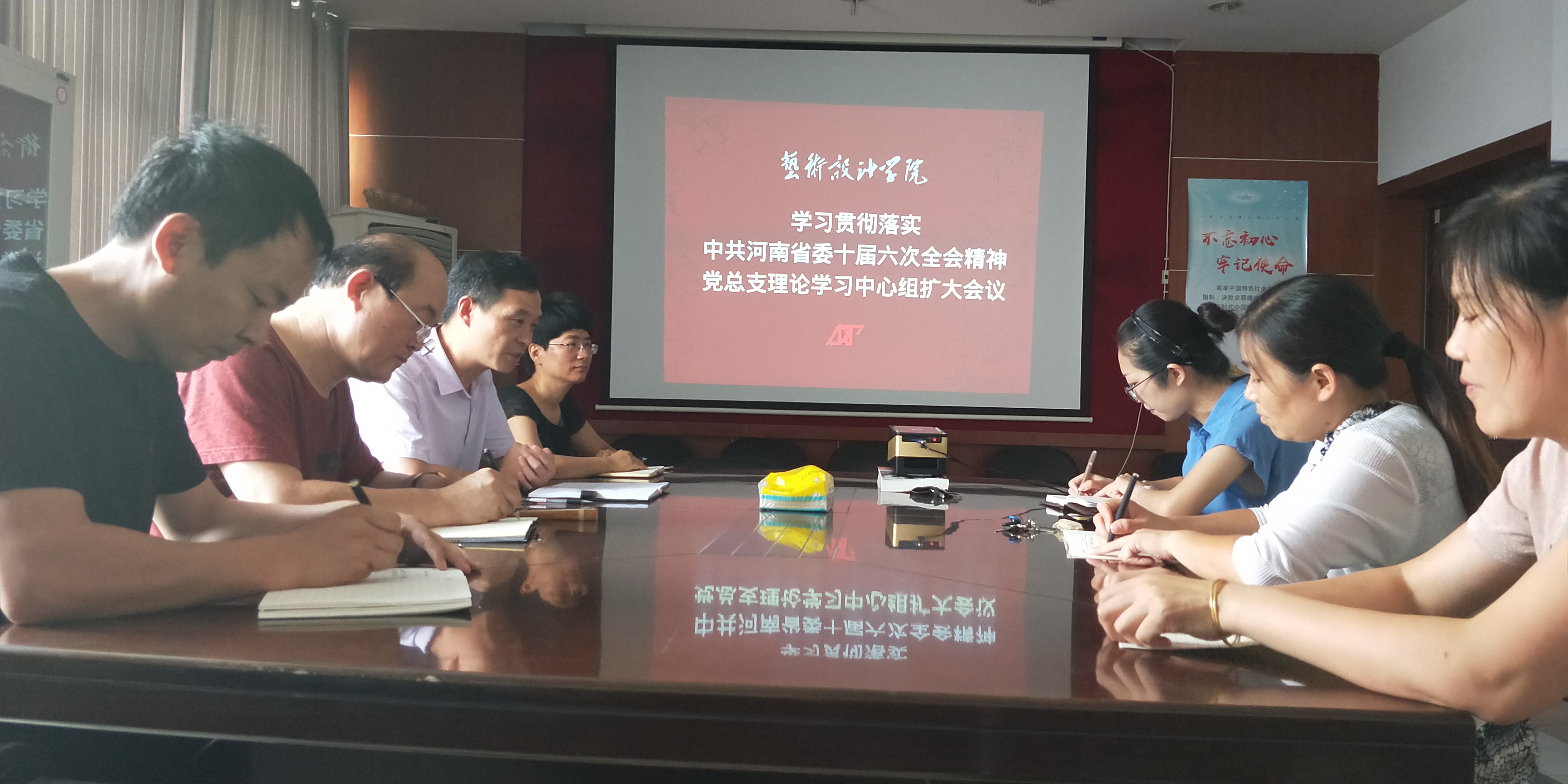 7月28日,按照学校党委要求,艺术设计学院党总支召开中心组扩大会议,专题学习贯彻落实中共河南省委十届六次全会暨省委工作会议精神,全体处级干部、总支委员和各支部书记参加了会议。