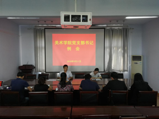 9月11日上午,美术学院党总支在学院会议室召开新学期党支部书记例会,部署新学期党建工作。学院党总支书记张朝阳、党总支副书记王庆以及各支部书记参加了会议。
